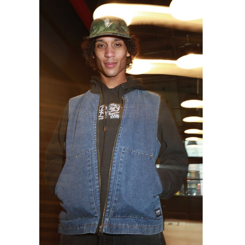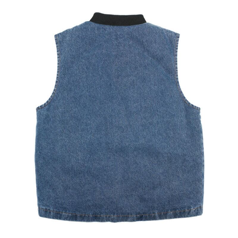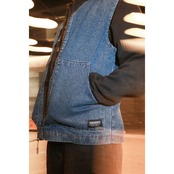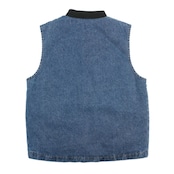 デニム生地を使用した軽い裏地仕様のベストジャケットです。